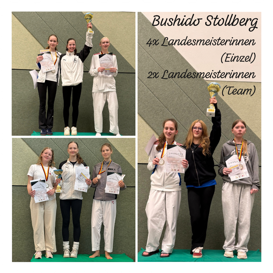 Am Samstag, den 14.03.2026 konnte unser Verein Bushido Stollberg mit starken Leistungen bei den Landesmeisterschaften auf sich aufmerksam machen. Insgesamt sechs Landesmeistertitel gingen an unsere Bushidos – ein bemerkenswertes Ergebnis, das von vier Sportlerinnen erkämpft wurde und die intensive Trainingsarbeit der letzten Monate eindrucksvoll widerspiegelt.
